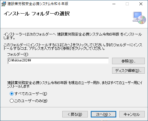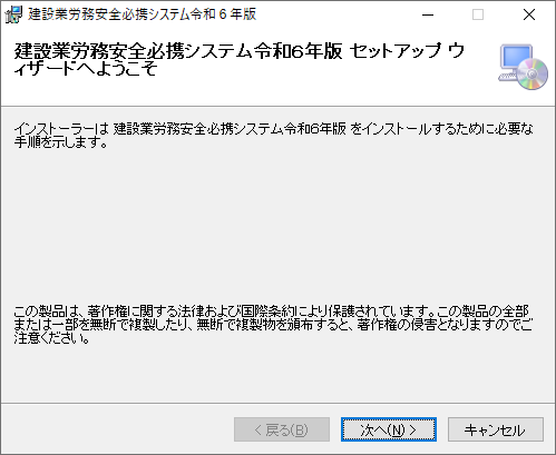 [建設業労務安全必携システム令和6年版−セットアップウィザードへようこそ]が表示されます。