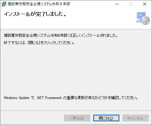 [建設業労務安全必携システム令和6年版をインストールしています。]が表示されます。